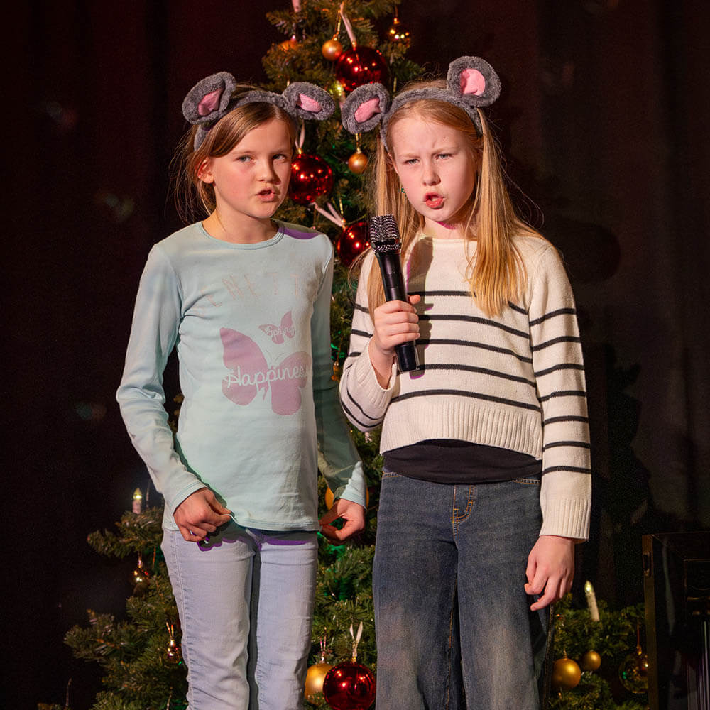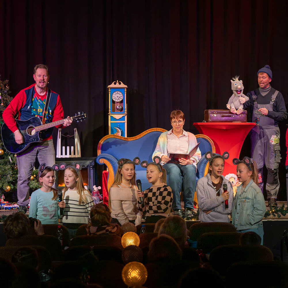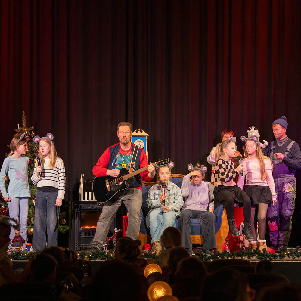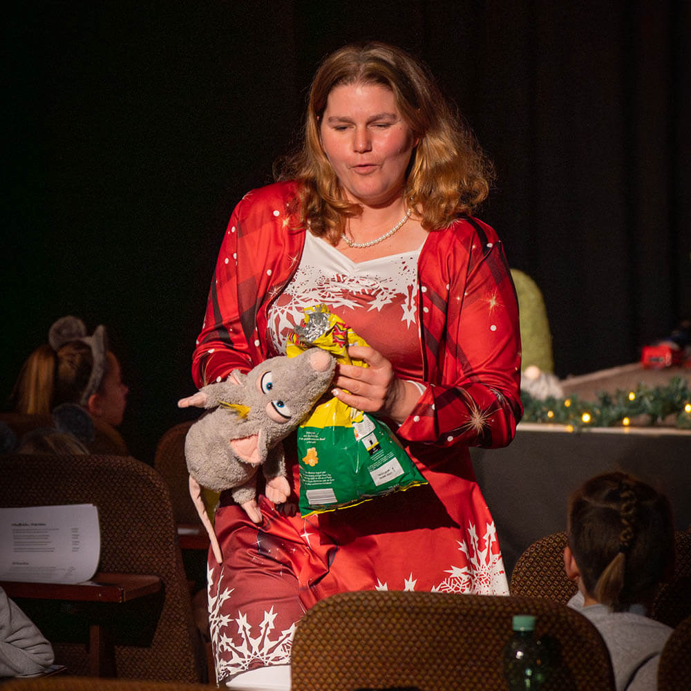 Unser zusätzlicher Part sah dieses Jahr folgendermaßen aus: Die Klangwölkchen und ich eröffneten das Stück mit drei eigenen Liedern – „Wir sind Freunde“, „Mein Weihnachten“ und natürlich mit dem neuen „Ratte Rasmus“-Song. Weiter unterstützten wir das Ensemble beim Singen bekannter Weihnachtslieder wie „In der Weihnachtsbäckerei“, „Schneeflöckchen, Weißröckchen“ oder „O Tannenbaum“, um zum Abschluss noch einmal mit dem gesamten Publikum den „Ratte Rasmus“-Song zu singen.
