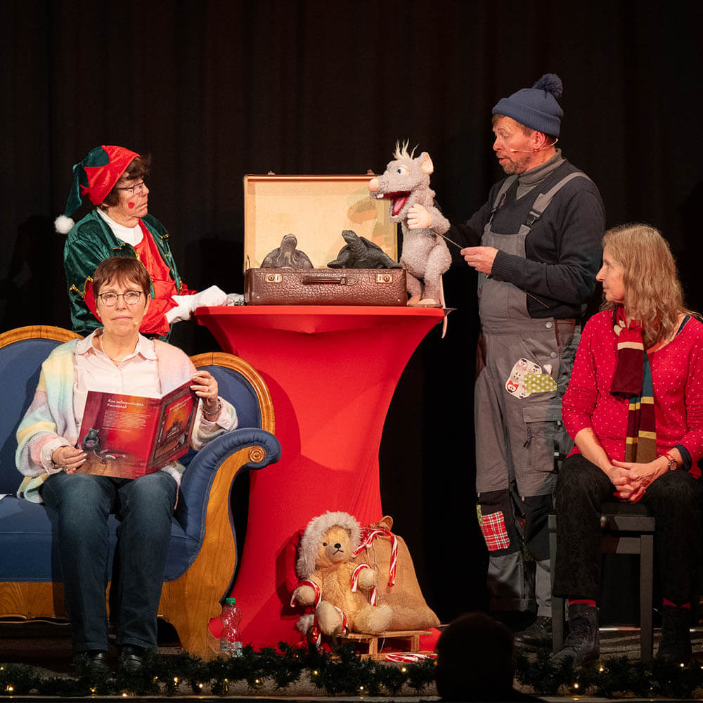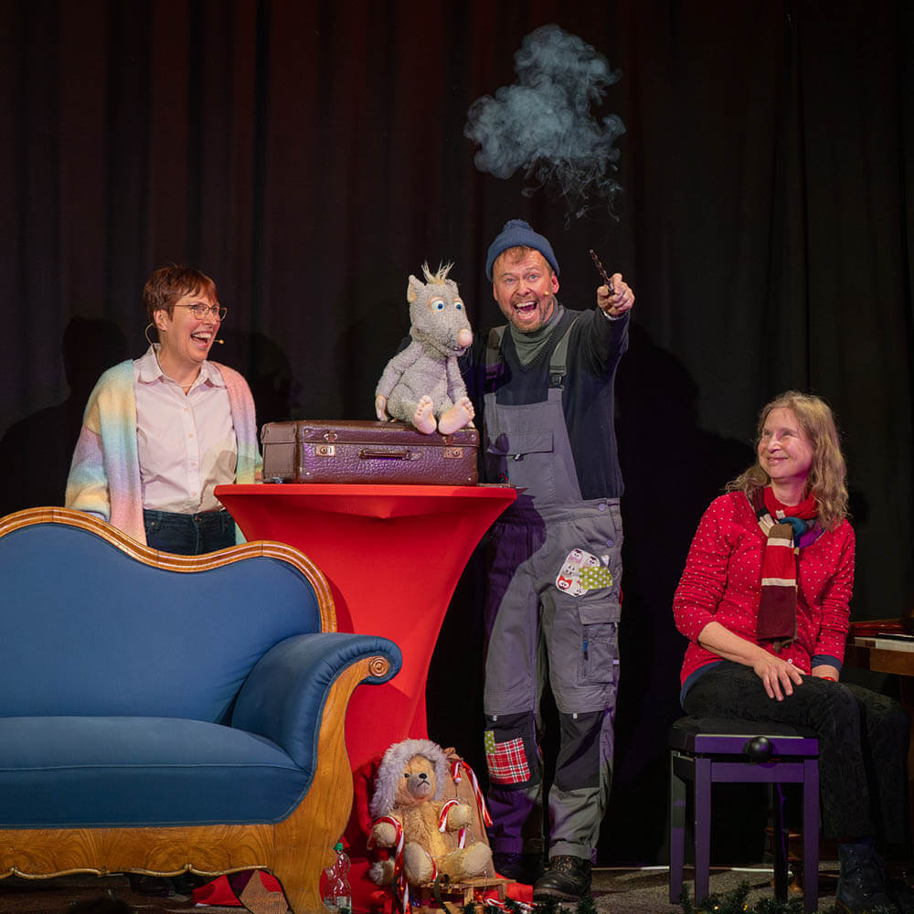 Die Geschichte von „Ratte Rasmus“ basiert auf dem Kinderbuch „Eine außergewöhnliche Freundschaft“ von Martin Picht und Anita Lützel. Das Bühnenstück besteht grundsätzlich aus einer Lesung von Teilen des Buches, kombiniert mit Theater-Elementen rund um Rasmus, der zusammen mit Martin witzige Dinge rund um Weihnachten erlebt. Alle Infos zu Ratte Rasmus findet ihr übrigens auf seiner Website!