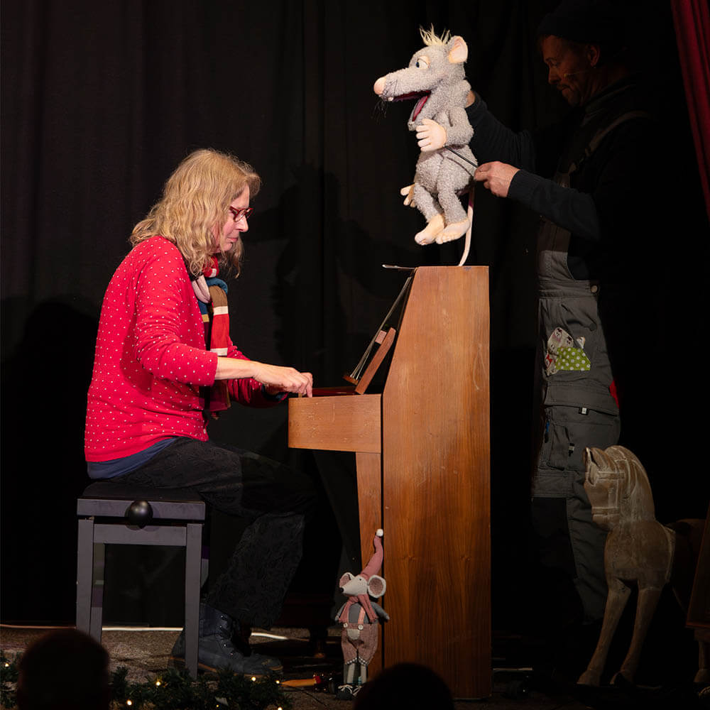 Jetzt war es endlich soweit! Fast ein gutes halbes Jahr ist vergangen, seit ich Martin Picht und Stefan Huß kennengelernt habe, die mich mit dem „Ratte Rasmus“-Projekt vertraut machten. Damals stand schnell die Idee im Raum, das in Malente und Eutin bereits etablierte Bühnenstück um unsere Kinderlieder zu erweitern. In den letzten Monaten wurde daraus ein tatsächliches Konzept, das nun am 29. November 2025 im Binchen in Eutin seine Premiere feierte. Und diese Premiere war nicht nur ein großer Erfolg, sondern für die Klangwölkchen und mich auch eine ganz neue und wirklich großartige Erfahrung.